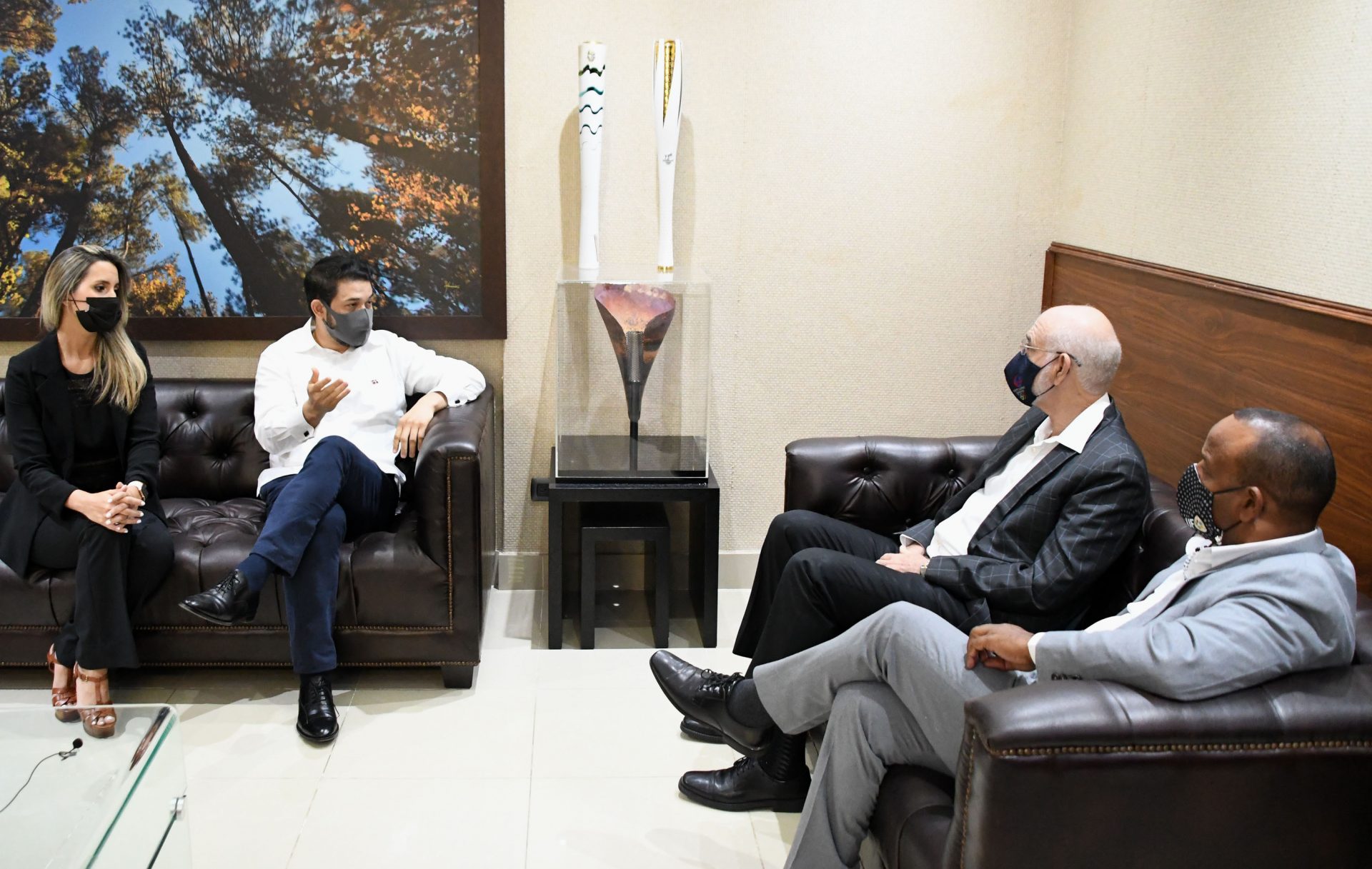 El embajador de la República Dominicana en Japón, señor Takata, se hizo acompañar de la señorita María Alejandra Castillo, directora de diplomacia, mientras que el licenciado Gilberto García, secretario general del COD, también estuvo en el encuentro, realizado en el despacho del presidente del organismo olímpico.