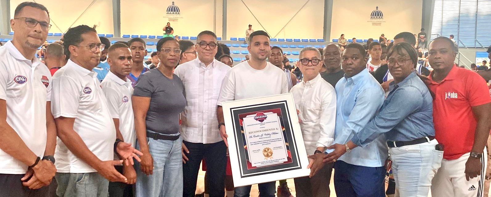 Edwin Castillo (Tatico), en nombre de Abadina, hizo entrega de una placa de reconocimiento al ministro de la Juventud, Carlos José Valdez Matos, por ser un aliado del deporte en la ciudad Capital y todo el país, en favor de los niños y jóvenes que practican diversos deportes.