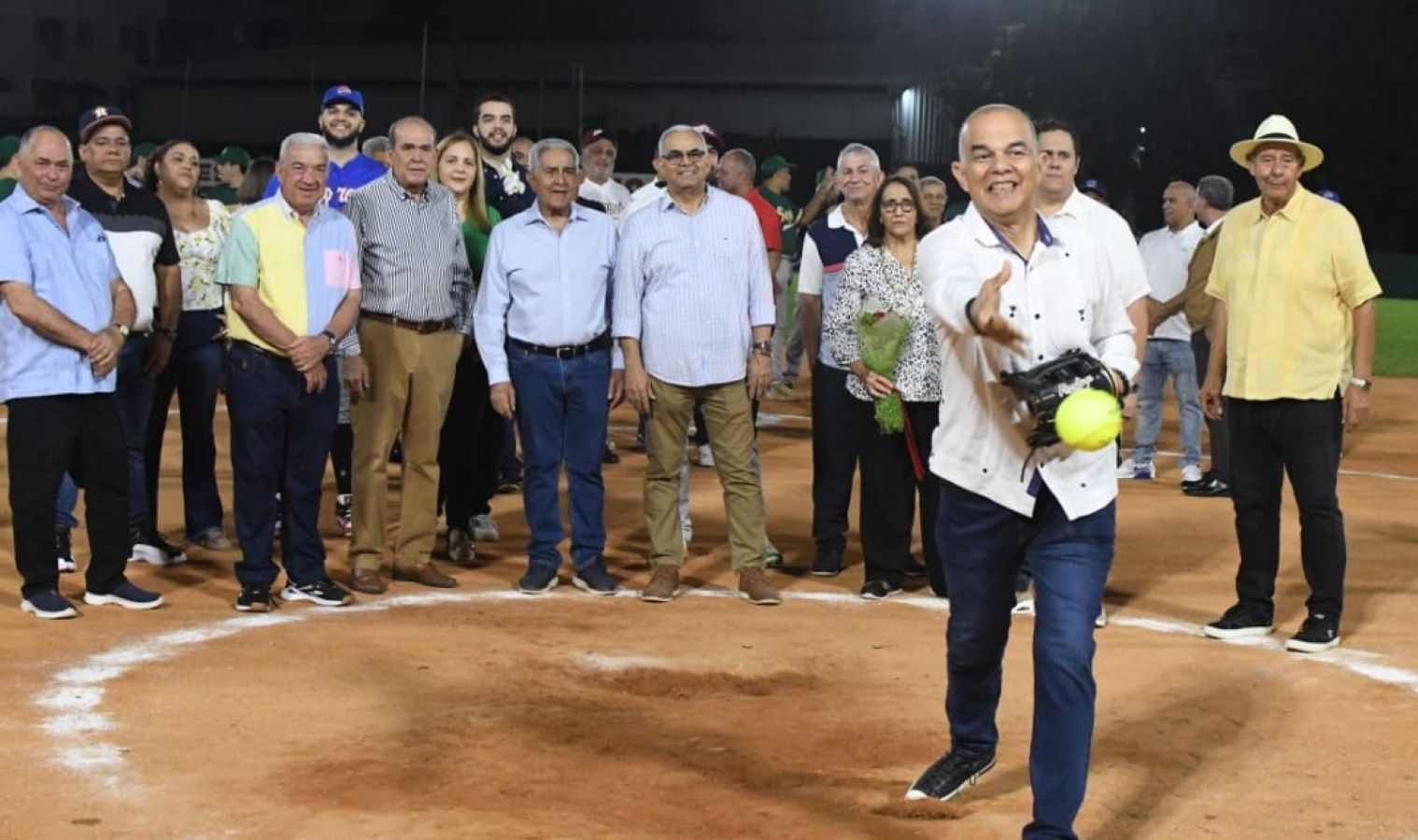 Garibaldy Bautista, presidente del Comité Olímpico Dominicano fue el receptor, batea Rafelín Franjul de la Liga Aborigen, mientras que el viceministro administrativo del Ministerio de Deportes y Recreación, Franklin de la Mota fungió como árbitro de honor. (Fuente externa)