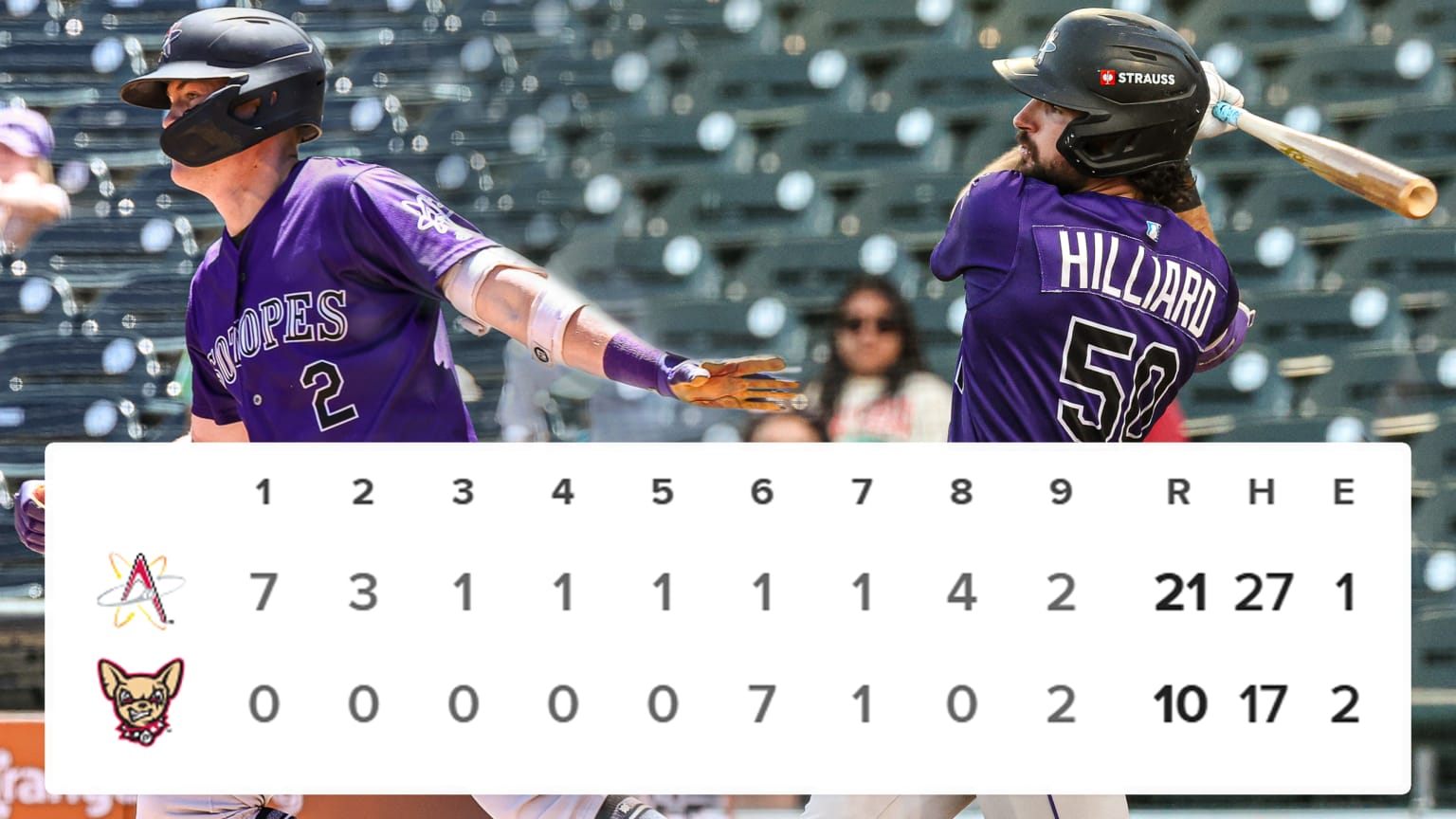 En una explosión ofensiva que parecía sacada de un videojuego, la sucursal de Triple-A de los Rockies, los Isotopos de Albuquerque, acumularon 27 hits y anotaron 21 carreras, logrando anotar en cada una de los nueve innings en su victoria 21-10 sobre El Paso el miércoles por la tarde en el Southwest University Park.