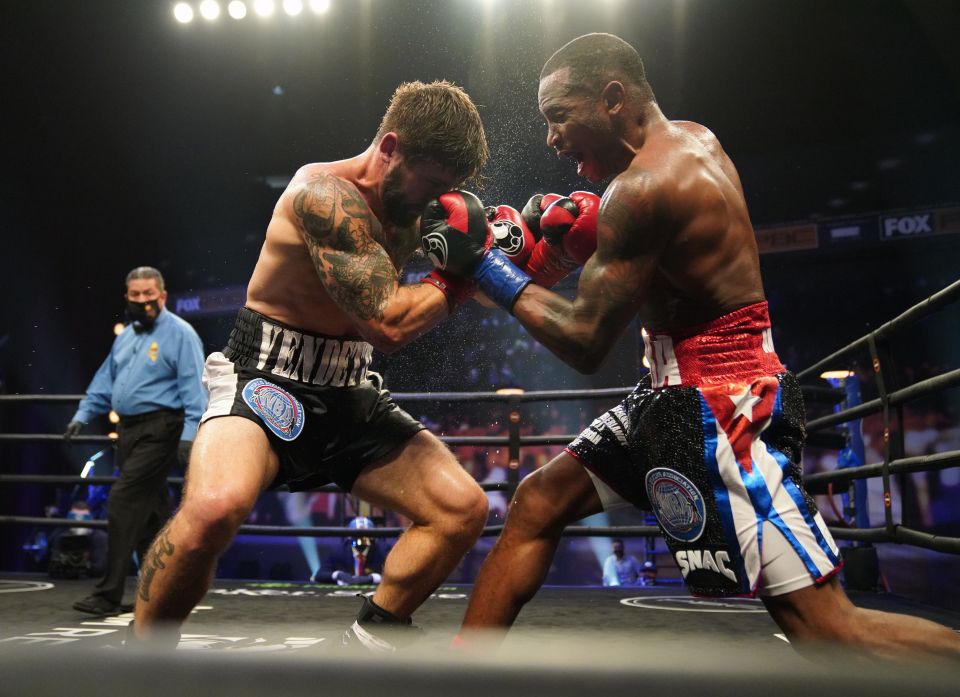 “Perro” Angulo (izq.) perdió, pero dio guerra. /Sean Michael Ham/TGB Promotions