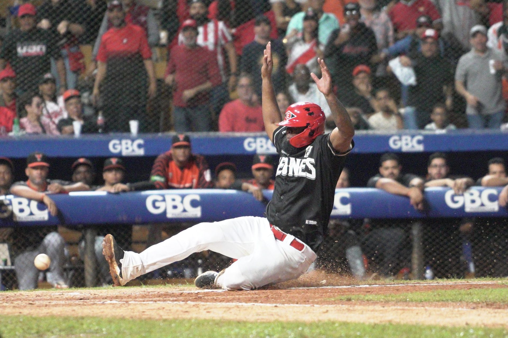 Los escarlatas abrieron el primer episodio con un doble de Rodríguez al jardín izquierdo contra Enny Romero, anotando con un imparable de Lake al central, quien se movió a segunda con lanzamiento desviado, se robó la tercera y anotó con un balk.