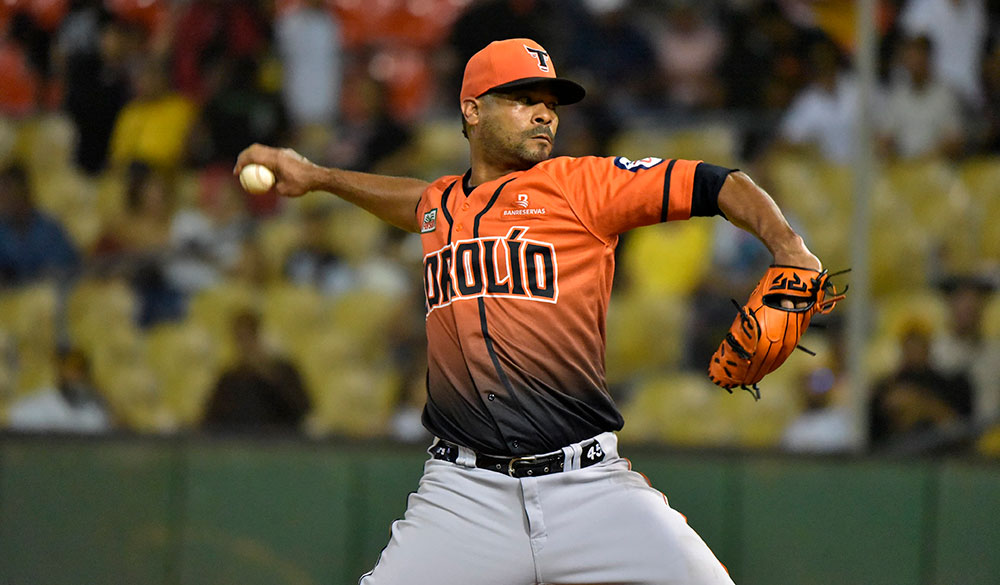 Esmil Rogers permitió cuatro hits en cinco entradas en el triunfo de los Toros 4-2 sobre las Águilas este jueves para llegar a veinte triunfos en su carrera en juego celebrado en el Estadio Cibao de Santiago.