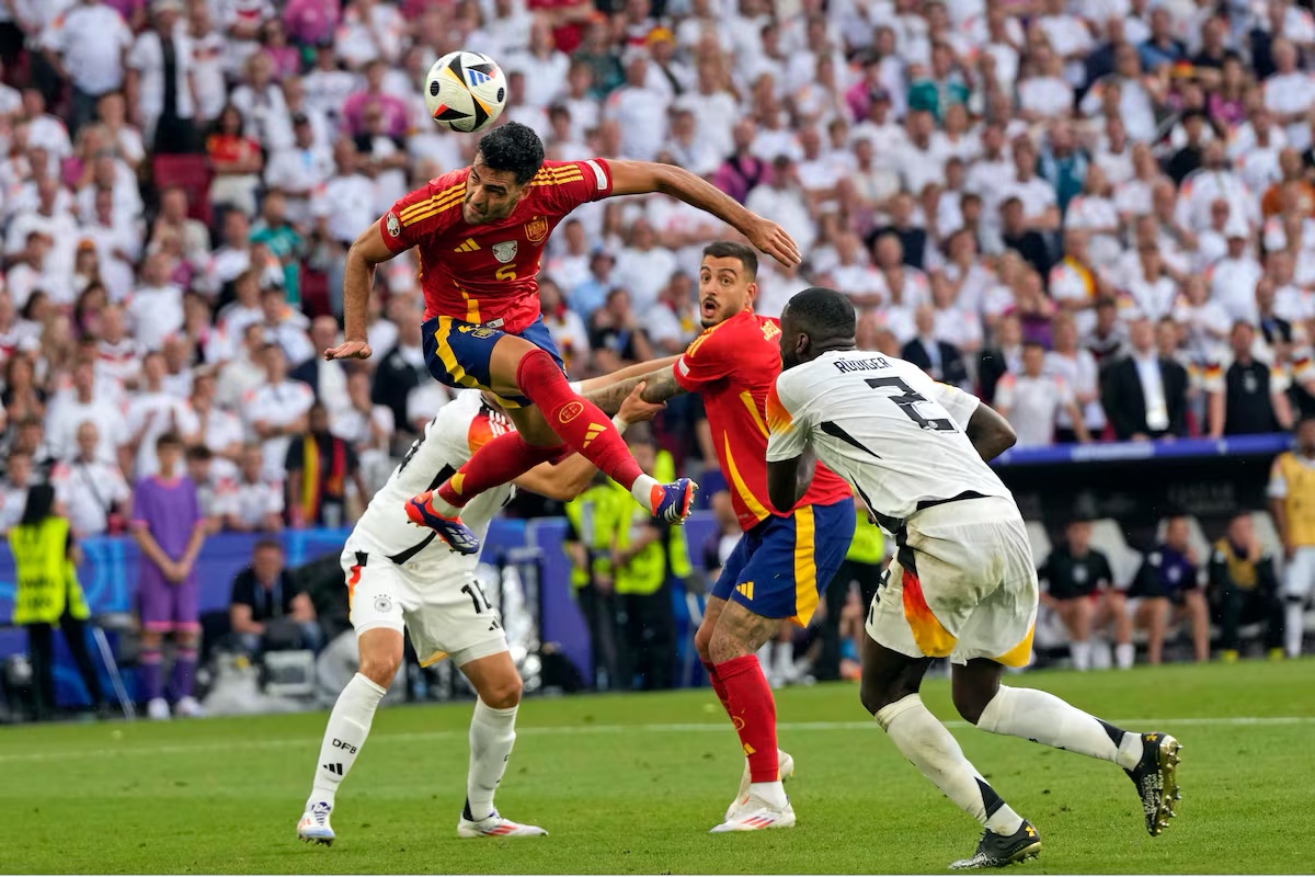Celebración a lo grande en Madrid y numerosas ciudades españolas. A punto de mate la prórroga, el jugador con más recursos en ese momento y autor del único gol de la Roja, Dani Olmo, lanzó un centro de oro, Mikel Merino giró su cuerpo y de cabeza anidó el balón en la portería teutona.