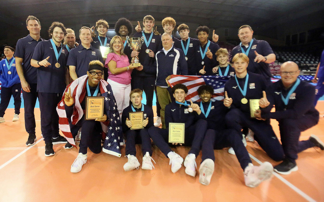 PONCE, Puerto Rico, 19 de mayo de 2024.- Estados Unidos se coronó Campeón invicto del Campeonato Continental NORCECA Sub-19 Masculino tras vencer a Cuba 3-1 (25-19 ,25-19, 20-25, 25-18) en el partido por la medalla de oro el domingo en el Coliseo Salvador Dijols de Ponce, Puerto Rico.