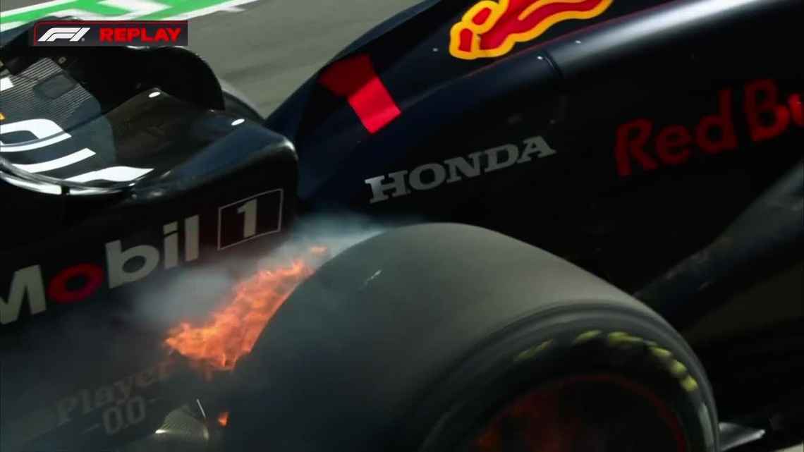 Poco después ya era una cortina de humo y Verstappen no tuvo más remedio que aflojar el ritmo, hacerse a un costado, dejar pasar a todos y dirigirse a boxes. Parecía increíble ver al neerlandés con problemas, una imagen poco vista. Y menos aún, lo que ocurrió cuando estaba en la calle de ingreso al pit lane: ¡los frenos explotaron!
