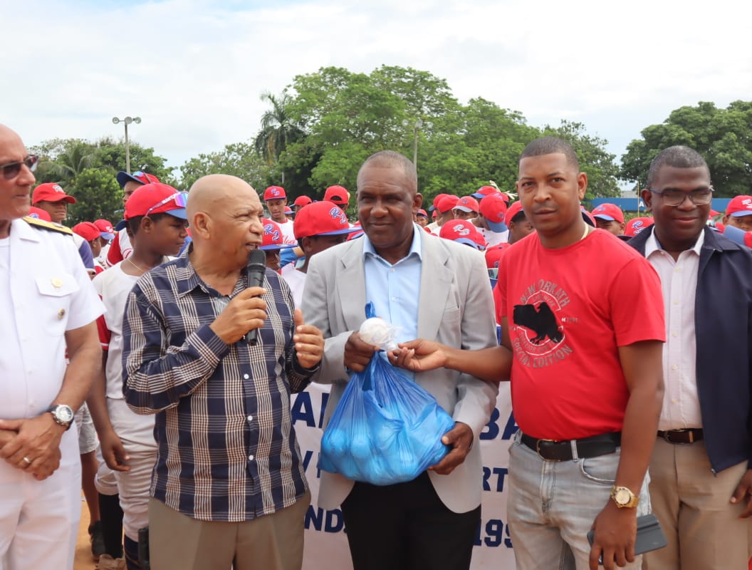 LOS MAMEYES, Villa Duarte.- La Federación Dominicana de Clubes (FEDOCLUBES), hizo entrega de una gran cantidad de bolas de béisbol para categorías Pequeñas Ligas e Infantil, durante la inauguración del 34 Torneo de Béisbol de la Academia «Rafael Baez», del sector de Los Mameyes, en Villa Duarte, Santo Domingo Este.