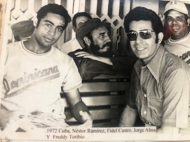 Jugando una serie en Cuba, eran tanto el magnetismo de Freddy Elmer, que el comandante Fidel Castro no se aguantó y bajó al dogout a saludarlo, como vemos en la foto, donde además figuran Néstor Ramírez y Jorgito Almas.