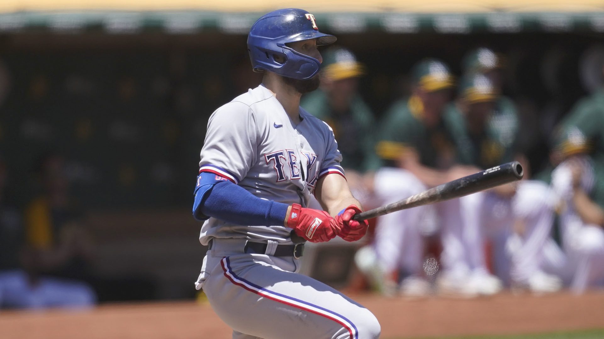 OAKLAND, California, EE.UU.- Joey Gallo se voló la barda por quinto juego consecutivo, Nate Lowe pegó dos jonrones y los Rangers de Texas superaron el jueves 8-3 a los Atléticos de Oakland.