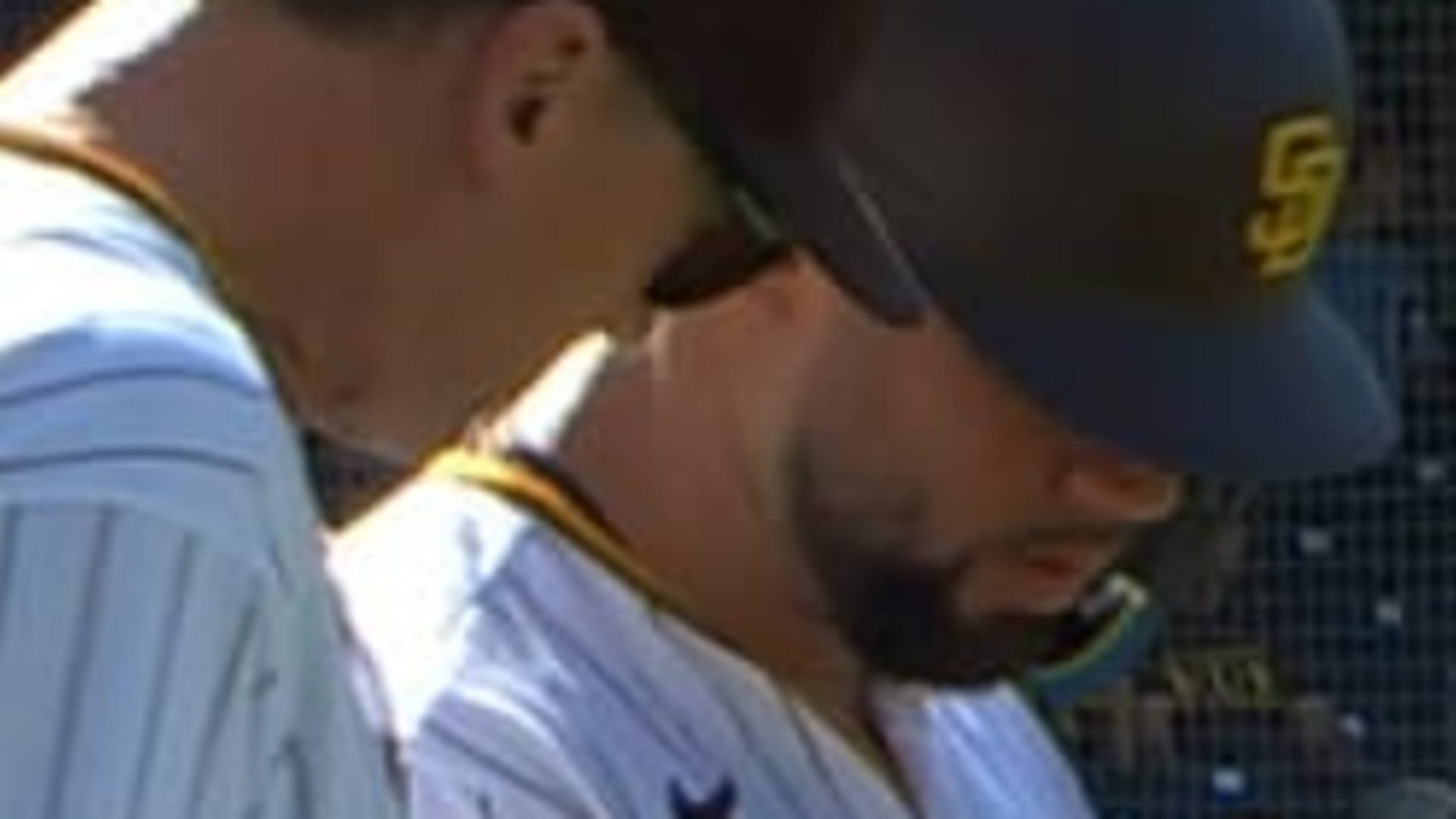 El receptor dominicano sufrió una fractura en la muñeca derecha en la derrota de los Padres por 5-1 ante los Filis en el Petco Park el miércoles al ser golpeado por un lanzamiento del relevista Jeff Hoffman en la parte baja de la octava entrada.