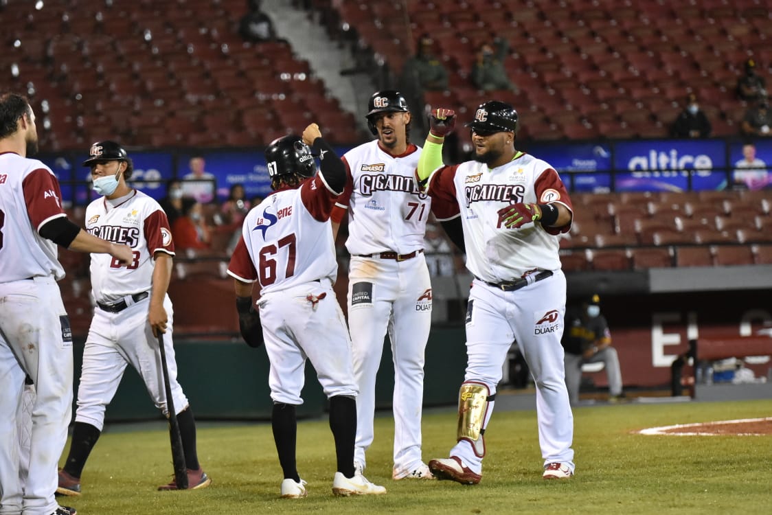 Los Gigantes montaron un festival de largos batazos con dos jonrones de Ronald Guzmán, dos de Juan Francisco, incluyendo uno con las bases llenas y remolcando 7 carreras y otro de Alfredo Marte.