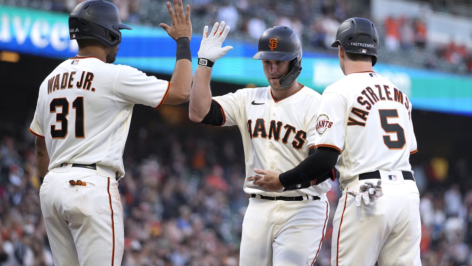 Buster Posey conectó un cuadrangular de tres carreras en un primer inning que duró 43 minutos y Steven Duggar y LaMonte Wade Jr. la sacaron del parque en el cuarto para San Francisco, que propició la 13ra derrota seguida de su rival en la División Oeste de la Liga Nacional. El bateador emergente venezolano Wilmer Flores disparó un jonrón de dos carreras en el quinto y Brandon Belt bateó su noveno bambinazo de la temporada en el mismo episodio.