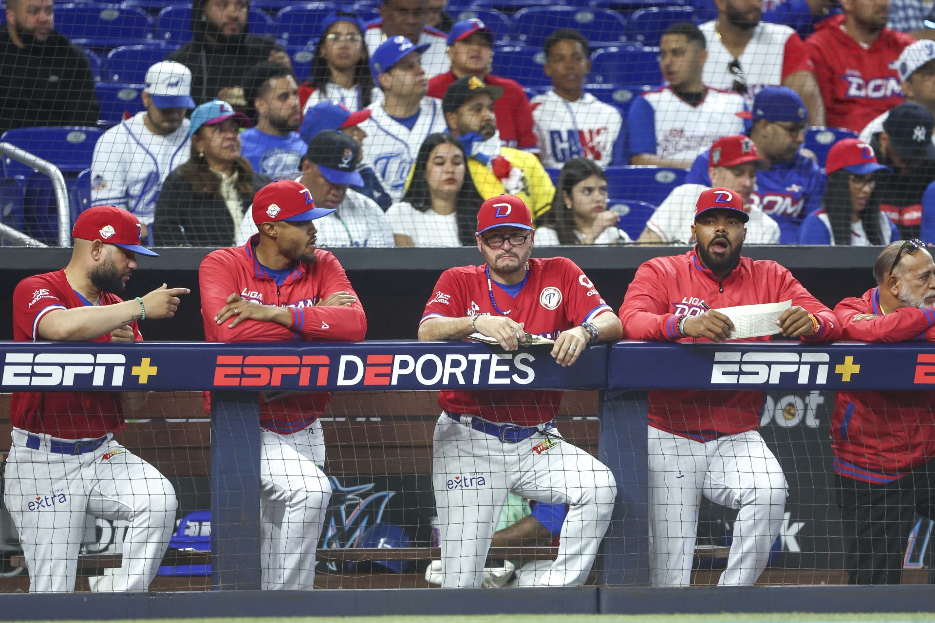 Junto a su cuerpo de coaches tendrán que esperar el desenlace del juego de tercera hora entre Tiburones y Soles, para definir su rival de este jueves.