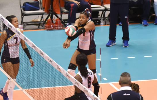 Gina Mambrú, a la izquierda, mientras recibe una bola. (Cortesía FIVB)