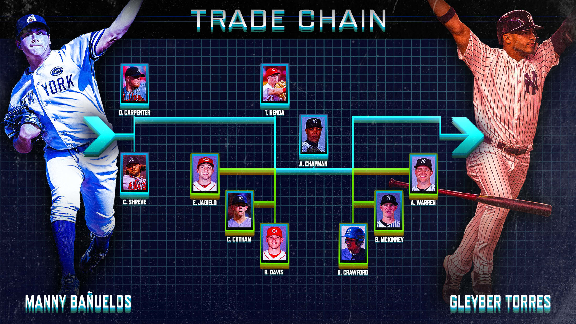 Chapman, en efecto, fue enviado a los Yankees en un canje que incluyó a dos prospectos que en ese momento se encontraban en el Top 10 de Nueva York, según MLB Pipeline: Jagielo y Davis. Renda ni siquiera estaba en el Top 30, pero su rol en ese canje ayuda a rastrear las raíces de este árbol.