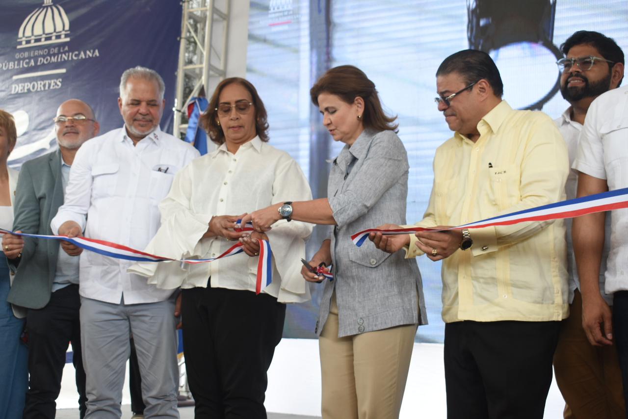 La vicepresidente Raquel Peña encabezó el acto de inauguración de las obras deportivas, acompañada del ministro de Deportes y Recreación, Francisco Camacho, donde se presentó ante las autoridades civiles, comunitarias y deportivas locales la nueva cara del campo de fútbol Rosendo Sepúlveda y el polideportivo municipal de San Cristóbal.