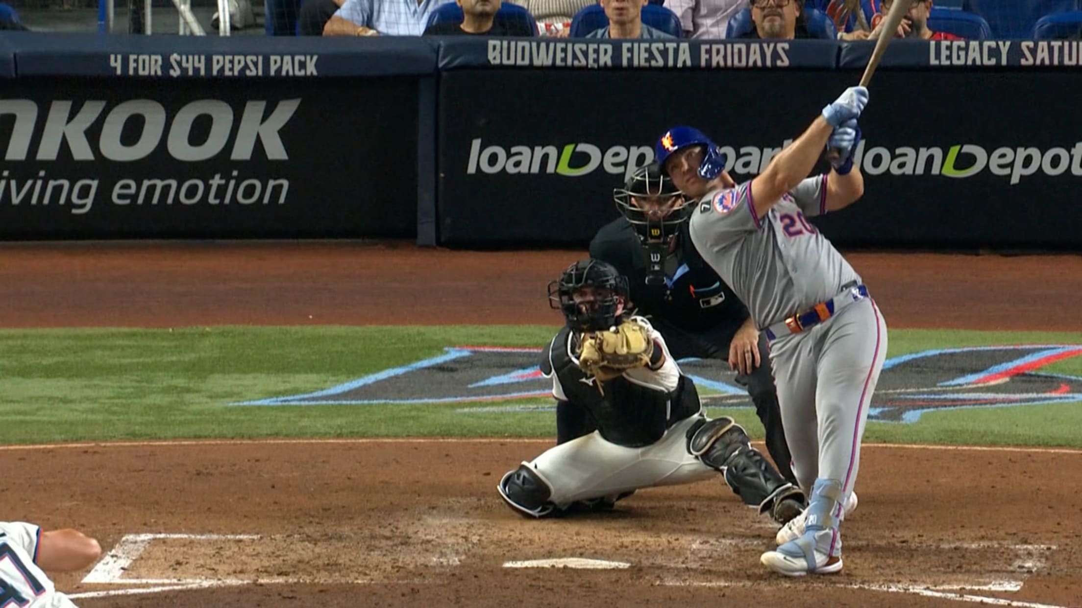 El batazo de Alonso sacó del juego al abridor de Miami, Cal Quantrill (0-1), y destacó una quinta entrada de siete carreras. Torrens coronó la ráfaga cuando conectó un jonrón de dos carreras contra el relevista George Soriano para poner a los Mets 8-1 al frente.