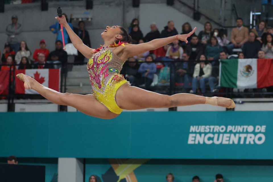 Bárbara Domingos fue la deportistas más galardonada de este deporte en Santiago 2023, ganando el All Around, Pelota y Cinta, y llevando a Brasil a lo más alto del podio.
