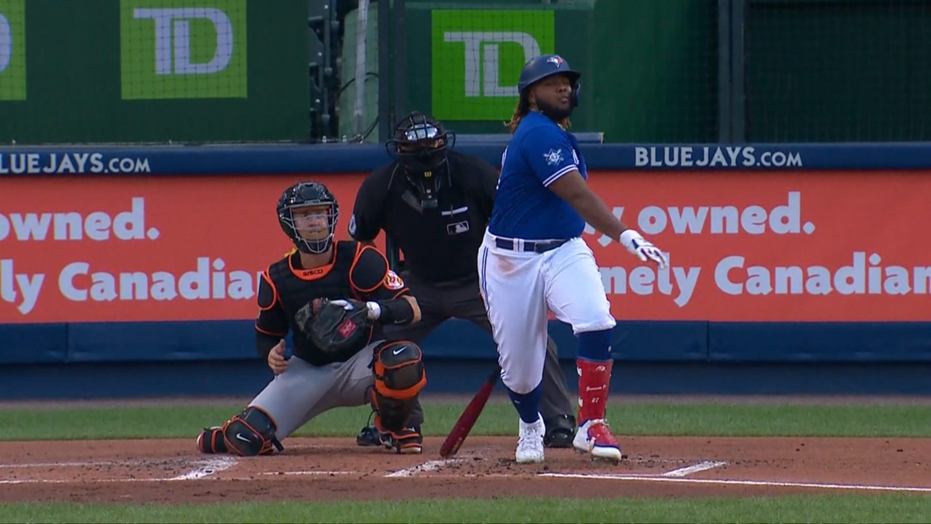 Por los Azulejos, los dominicanos Teoscar Hernández de 4-2 con una anotada, Guerrero de 4-2 con una anotada y dos impulsadas.