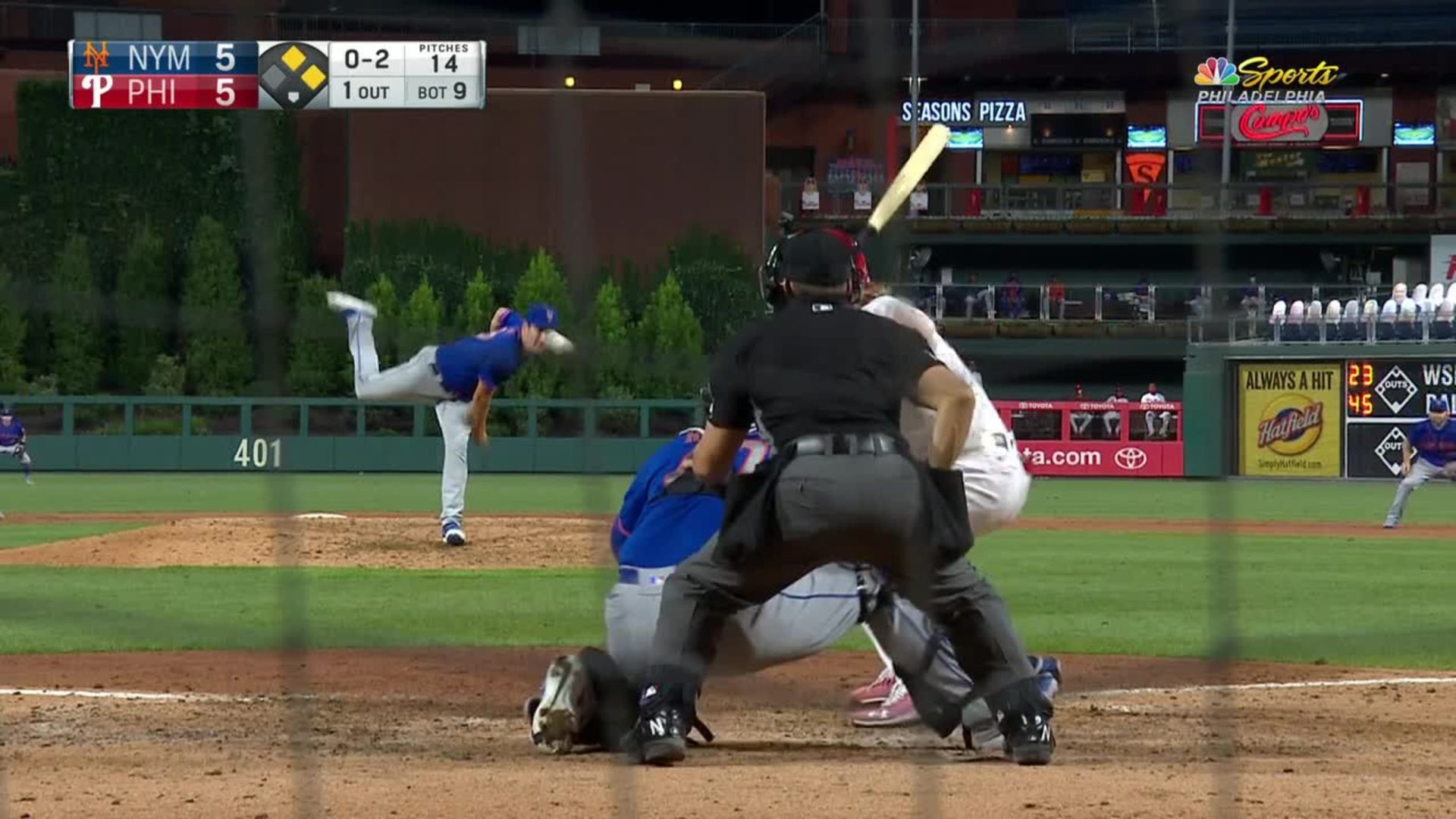 Roman Quinn comenzó el inning con un hit frente a Seth Lugo (1-2) y Andrew McCutchen le siguió con otro sencillo. Después de que Rhys Hoskins salió ponchado, Harper encontró un lanzamiento con cuenta de 0-2 y envió la pelota al jardín derecho. Quinn se deslizó de cabeza antes de que llegara el tiro de Michael Conforto.