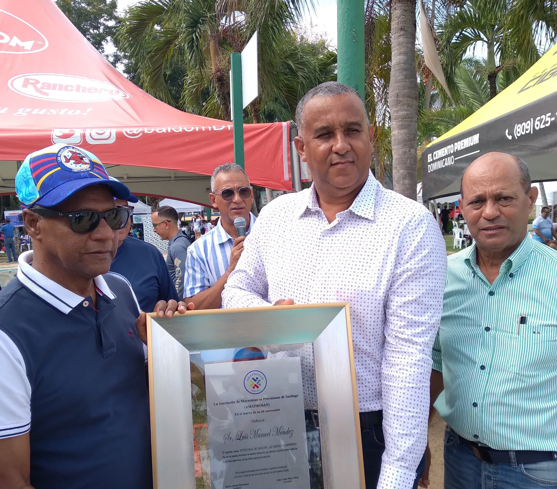 El máximo titular del club Amaprosan, licenciado Abreu Henriquez, al entregar el merecido reconocimiento al señor Luis Manuel, estuvo acompañado de los directivos, licenciado Ramón Ulloa, Julio César Perez, Virgilio Lantigua, Josue Arbaje, Ana Elsa Santos, Susana Gutierrez, entre otras personalidades.