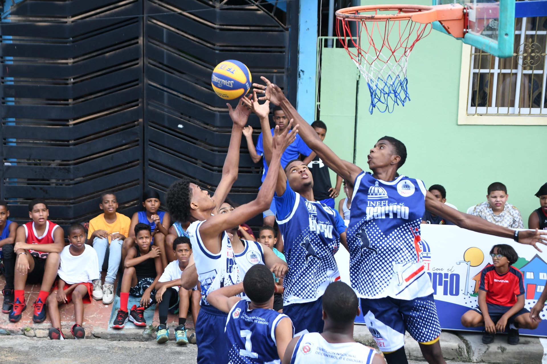 Acción del torneo de baloncesto 3x3 organizado por el Instituto Nacional de Educación Física, con su programa "INEFI con el Barrio". Fuente Externa