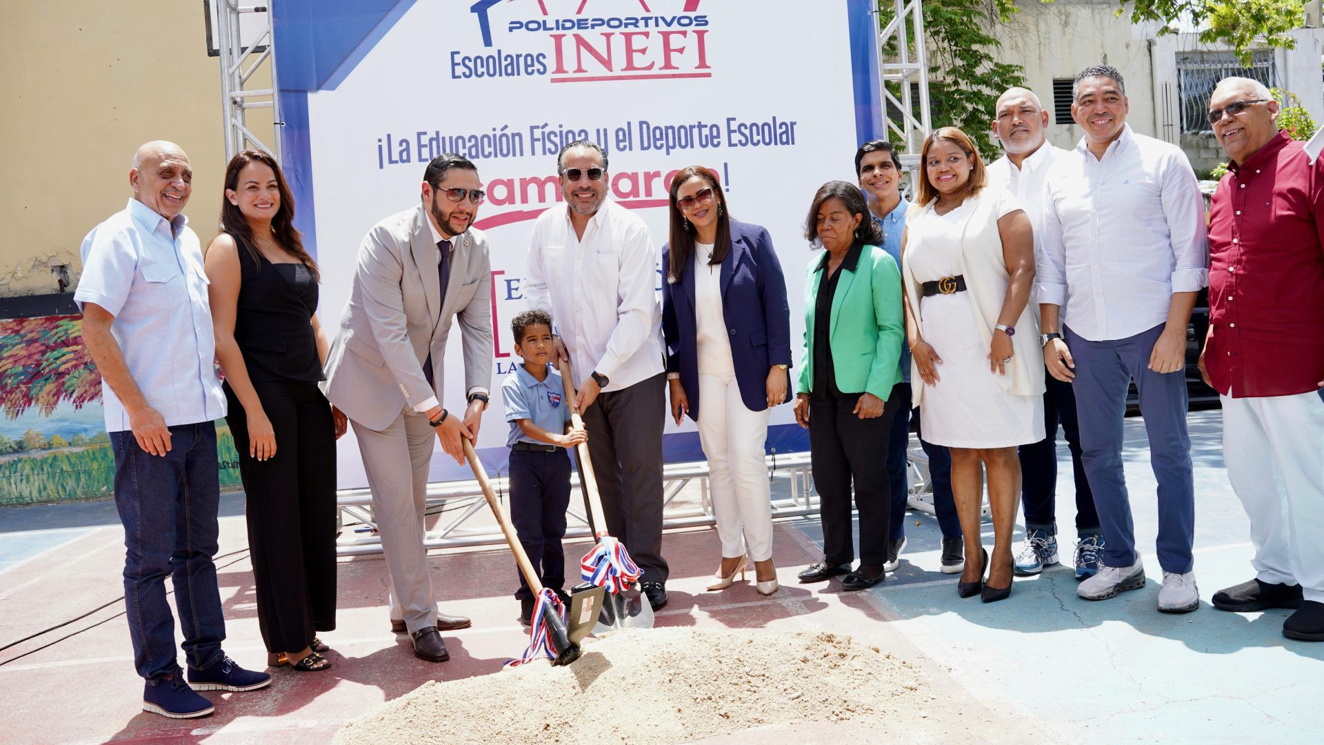 El acto simbólico estuvo encabezado por el director ejecutivo del INEFI, Alberto Rodríguez Mella, quien destacó que la iniciativa tiene como objetivo impulsar y apoyar el deporte escolar, iniciando así formalmente un proyecto de infraestructura deportiva.