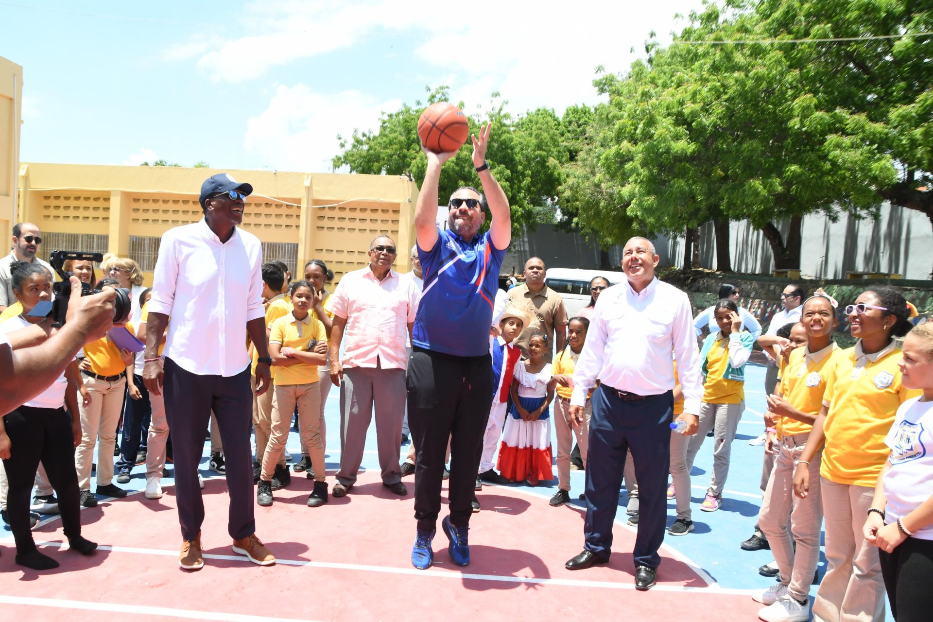 En la mesa protocolar, Rodríguez Mella estuvo acompañado por Ruperto Ruck, coordinador del Inefi Reg 08; Lorenzo Burgos, Diosita Torres, directora del centro educativo Herminia Pérez, Luis Felipe López, ex basquetbolista NBA, y el ex tenista profesional Victor Estrella.