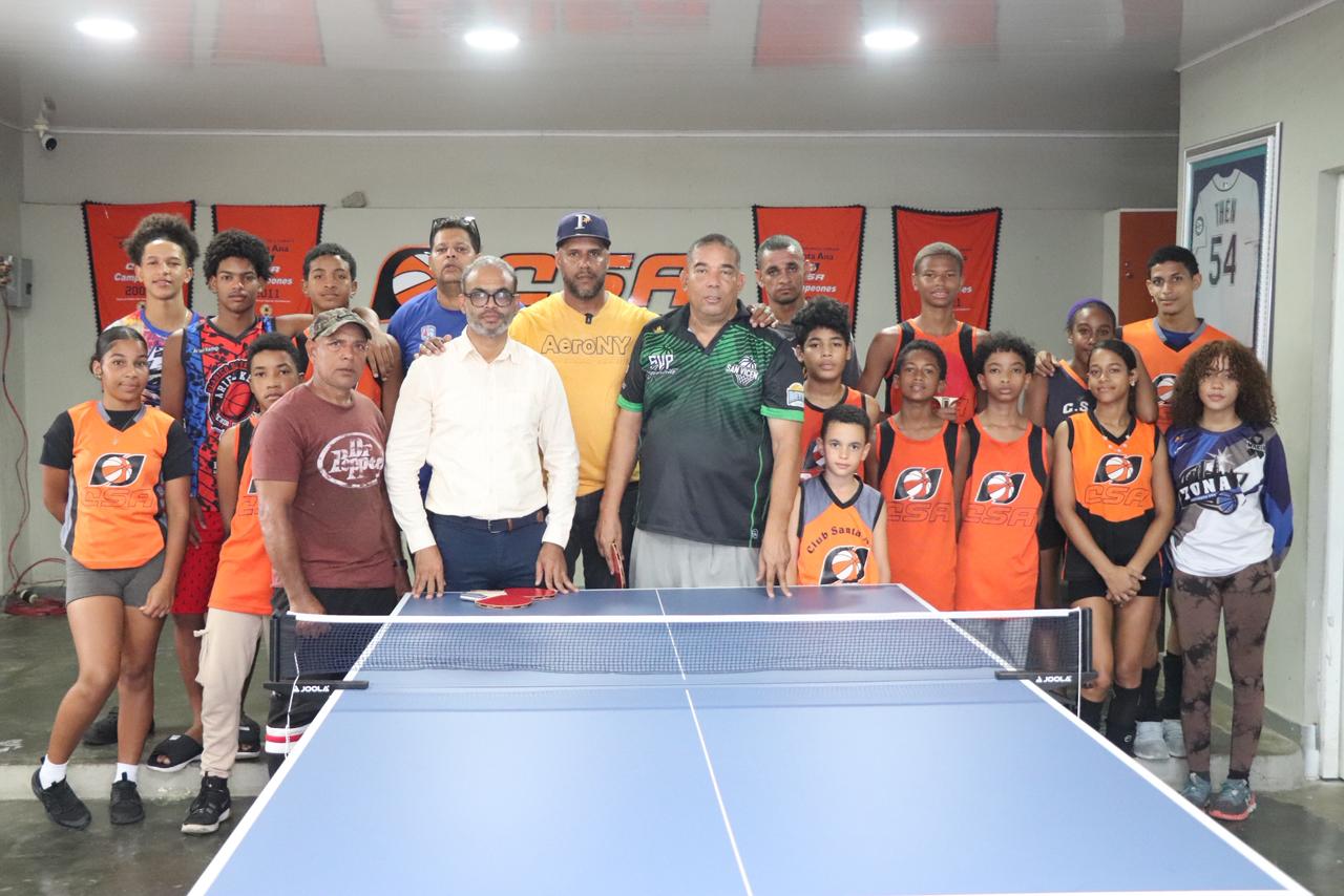 De su lado Juan Francisco de la Rosa presidente del club Santa Ana valoró como un sueño hecho realidad la donación de la moderna mesa y los utensilios para la práctica de tenis de mesa.