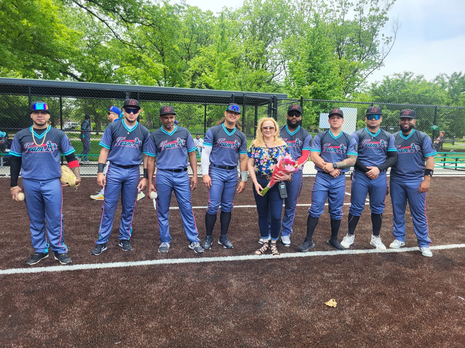 Troyanos, con su madrina Isabela Peña, y el combinado gris, AK, con su dirigente Erlin Acosta, Wilo, respaldado por Bamboleo Night Club de Elizabeth, New Jersey y su madrina Ana Mildred Rodriguez Fanini. Ak, Barbershop, Elizabeth, New Jersey.