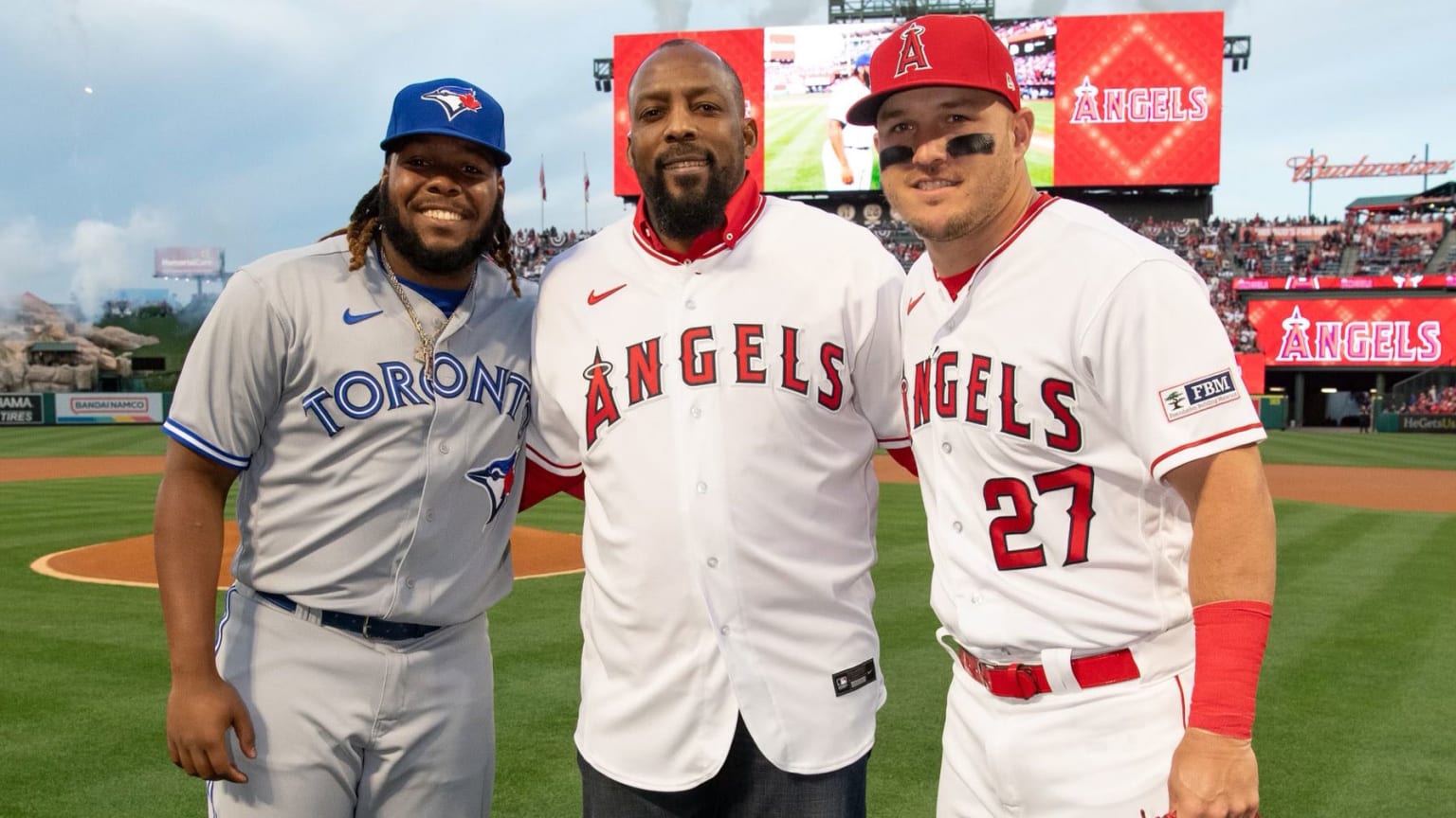 Guerrero padre fue tema de conversación antes de que lanzara el primer pitcheo ceremonial antes del partido inaugural de los Angelinos en casa. Vistiendo el uniforme de los Angelinos, Guerrero padre le hizo el tiro a Mike Trout. Guerrero Jr. luego les hizo companía cerca del plato.