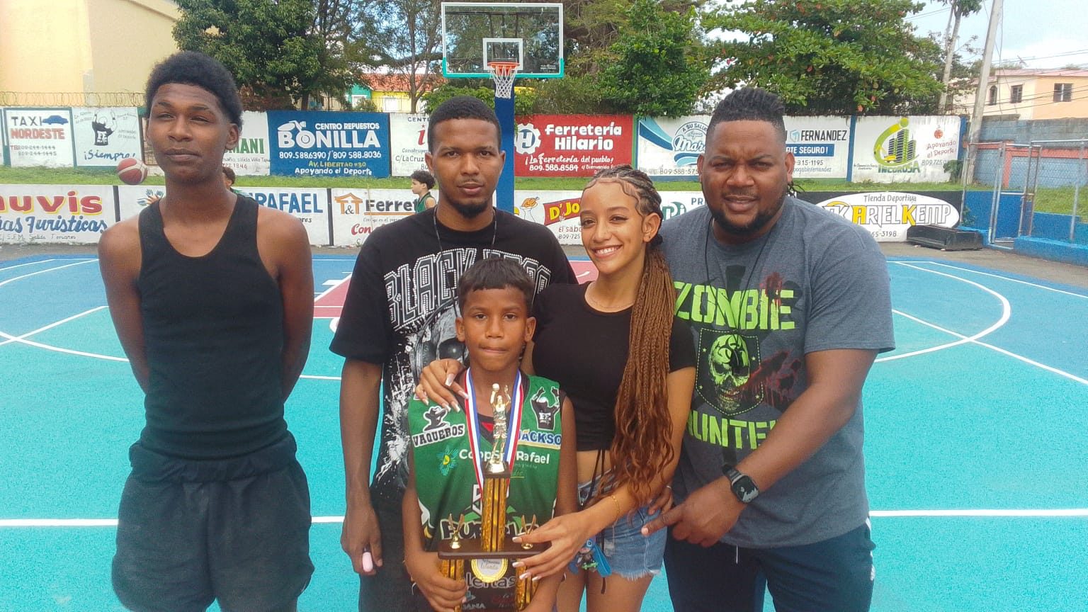 Grimaldi recibió la copa Pescadería Wanda de una comisión integrada por Carlos David de la Cruz, Gregorio de Jesús y Mileidy Rodríguez de la comisión de categoría formativa del club San Vicente.
