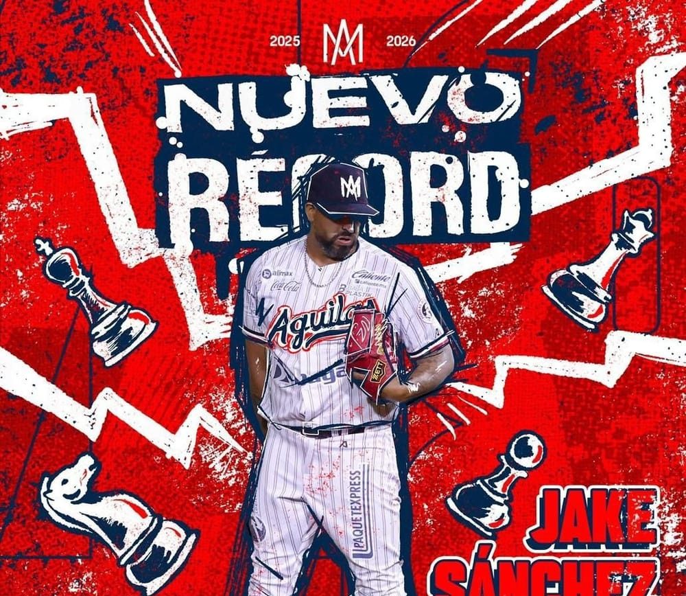 Jake Sánchez también impuso uno de los récords más difíciles de conquistar, y es el de más juegos salvados en una temporada, ese nuevo récord lo impuso la temporada 2021-2022 con 26 rescates.