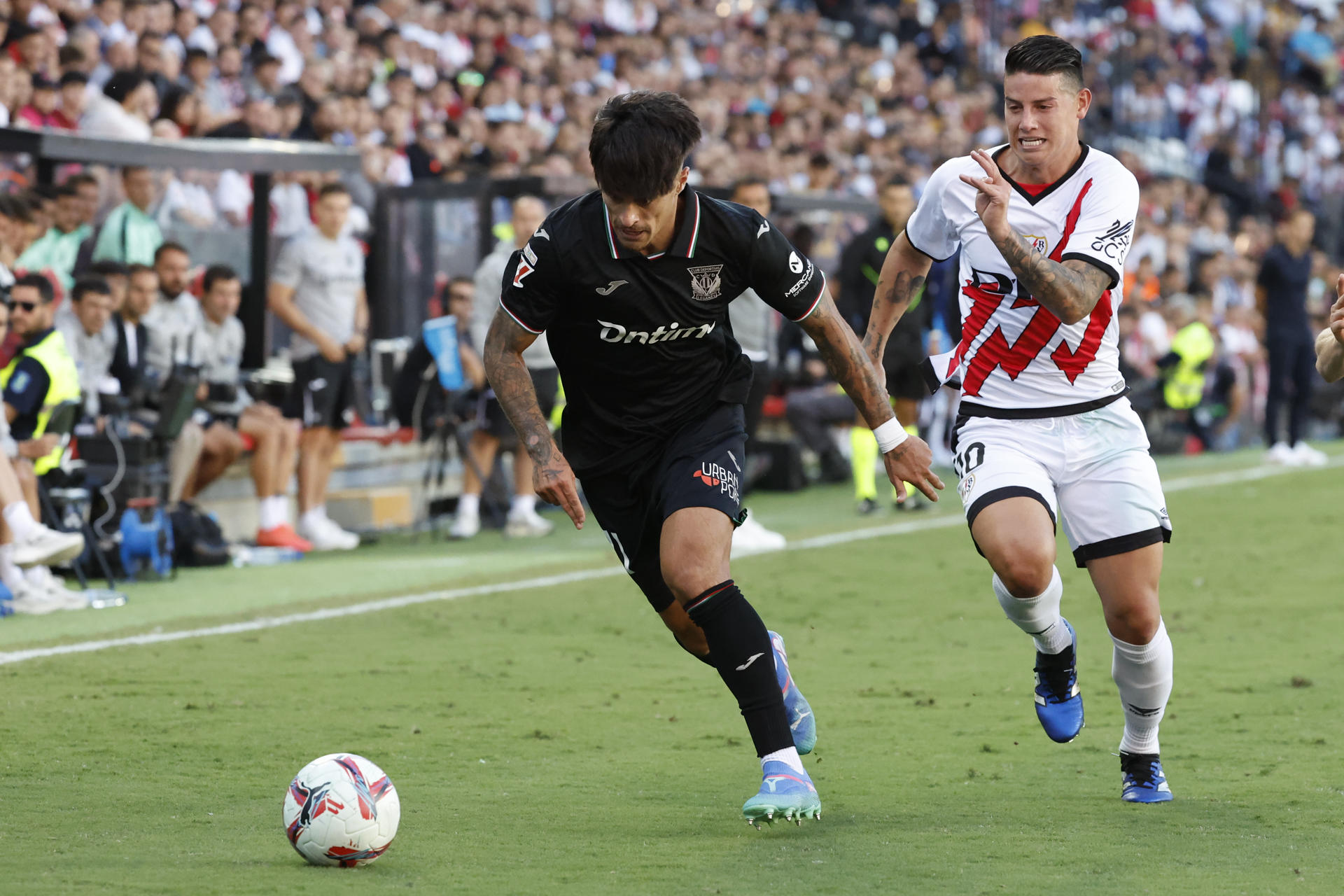 En su cuarta convocatoria, tras jugar unos minutos en la segunda parte frente a Osasuna y Atlético de Madrid y quedarse sin participar en el duelo contra el Girona, James Rodríguez disputó su primer partido como titular con el Rayo frente al Leganés.