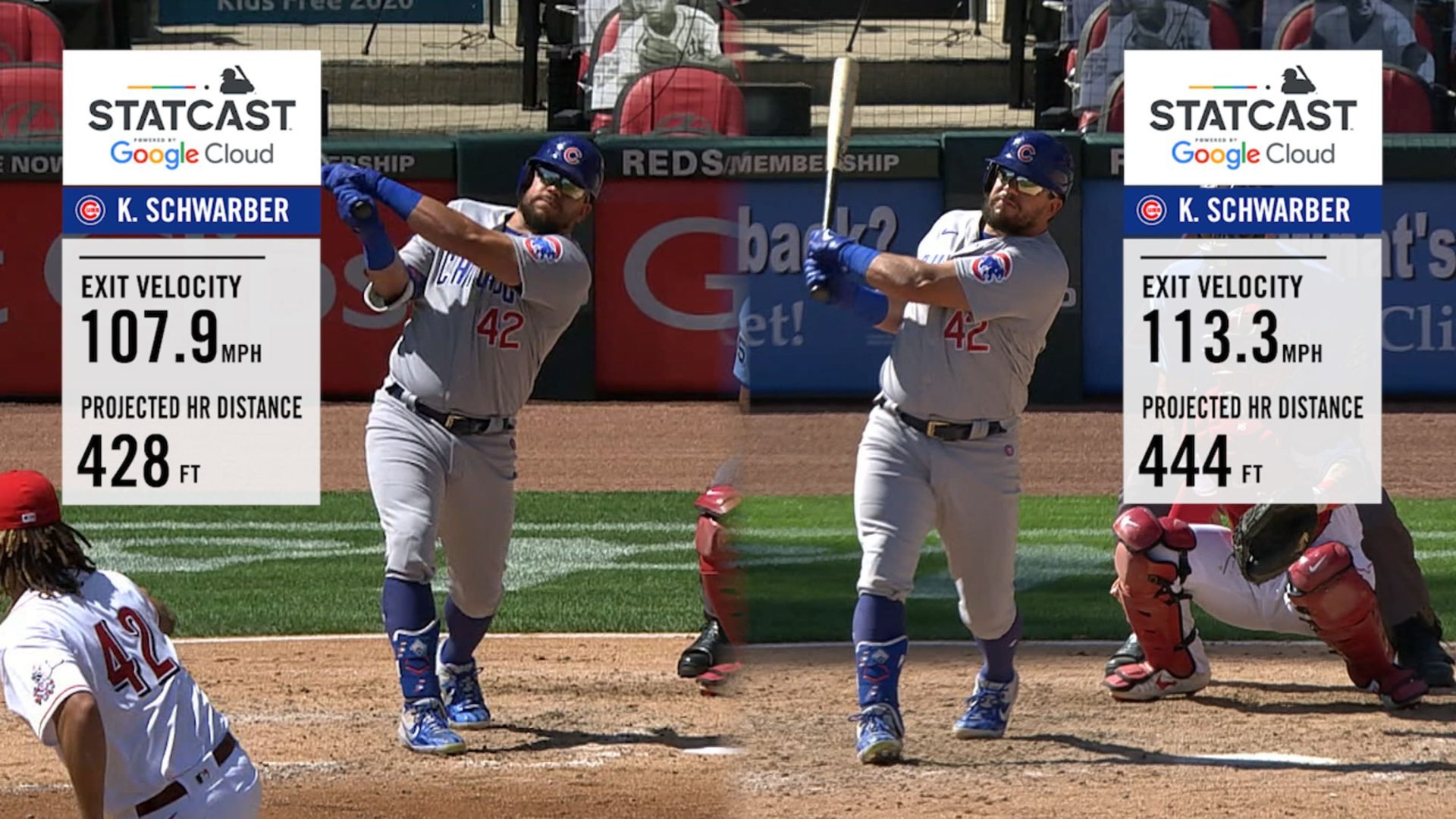 Schwarber pegó el primero y el último de los seis cuadrangulares de los Cachorros, un tope esta campaña. La sacó sin nadie en circulación en el cuarto episodio ante el dominicano Luis Castillo (0-5) y luego sacudió un grand slam ante el puertorriqueño José De León en el noveno.