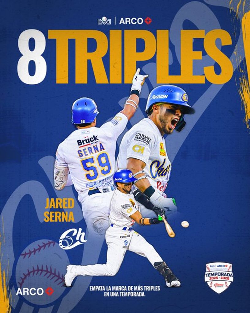 ECO: Jared Serna conectó su octavo triple de la campaña con Charros de Jalisco para igualar el récord histórico de la LMP, un notable registro histórico que ahora comparte con Ray Torres (1979-80), Wellington Dotel (2015-16) y Leo Heras (2016-17).