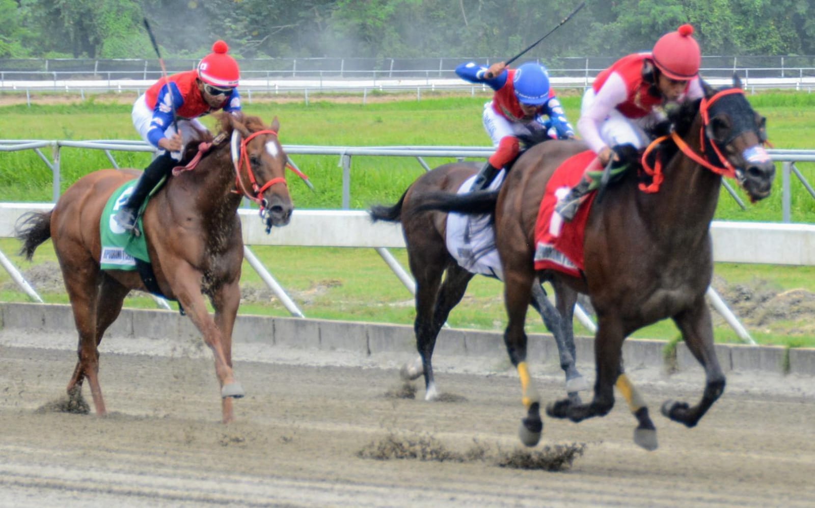 SANTO DOMINGO ESTE.- Los jinetes Carlos de León y Omar F. González ganaron este sábado dos carreras cada uno y mantienen sus respectivas condiciones como líder y segundo en victorias esta temporada, en el Hipódromo V Centenario, donde el pool de 6 pagó RD$2,304.00 por partes, más las partes de cinco