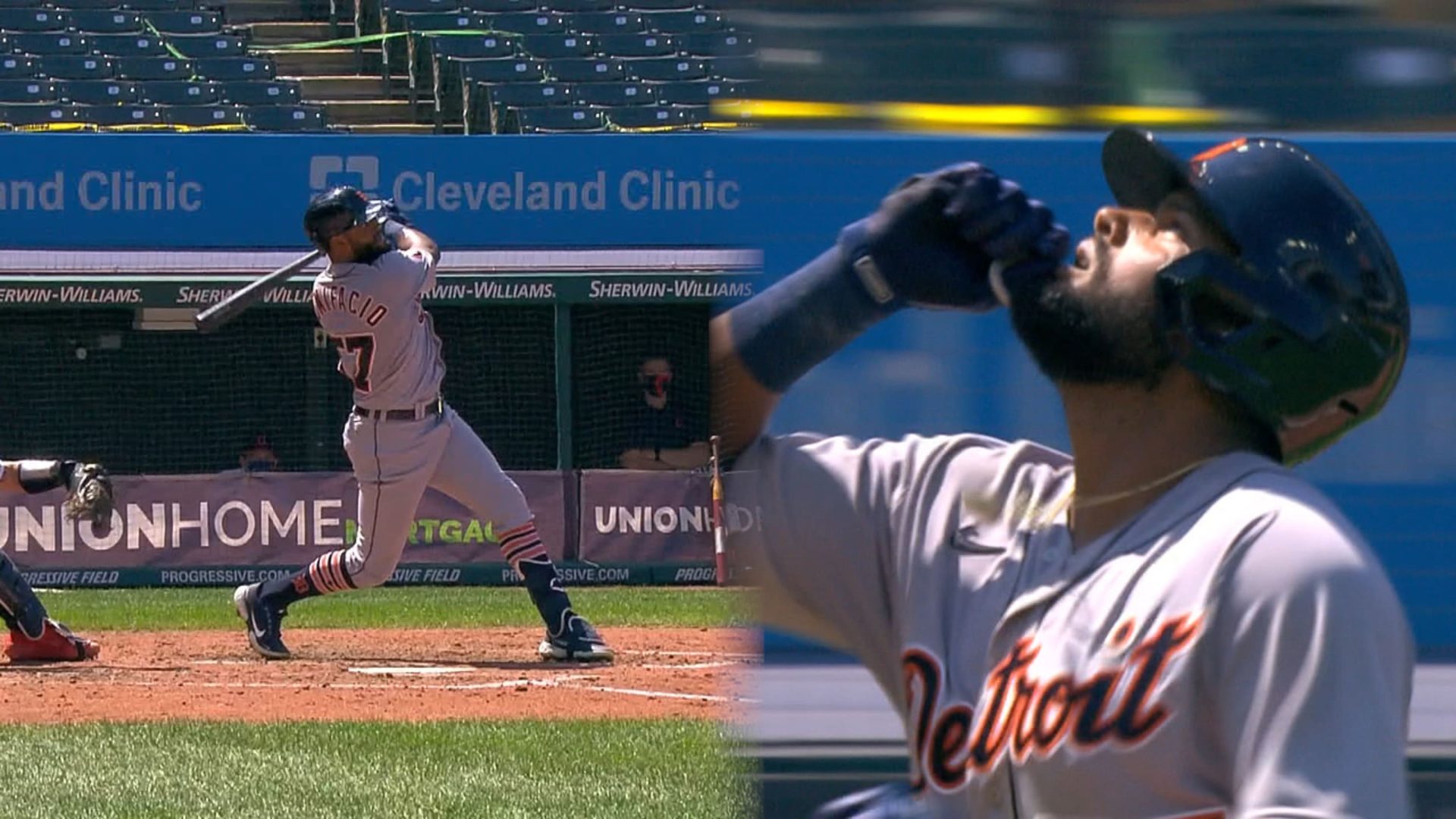 El dominicano Jorge Bonifacio conectó un cuadrangular de dos carreras y Niko Goodrum y Grayson Greiner aportaron vuelacercas solitarios por los Tigres, que ganaron por segunda ocasión en la serie de tres partidos después de caer en los 20 duelos previos ante Cleveland.