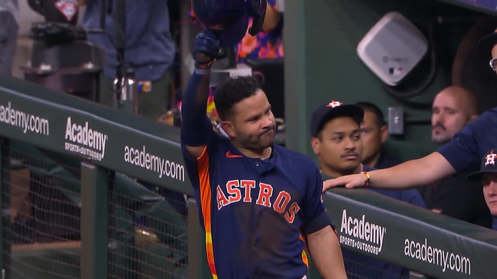 El público se puso de pie para ovacionar a Altuve, quien se sacó el casco como muestra de respeto y momentos después salió de la cueva para recibir más aplausos.