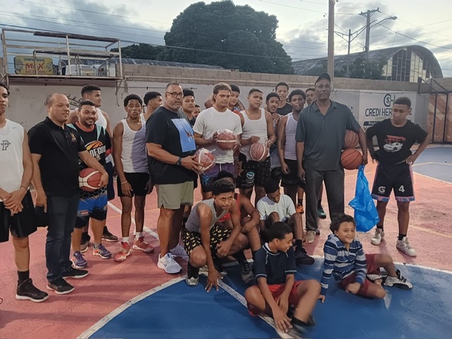 El lunes estuvimos con Caba en la cancha del Congo, donde entregó algunos balones de Mini básquet para los niños.