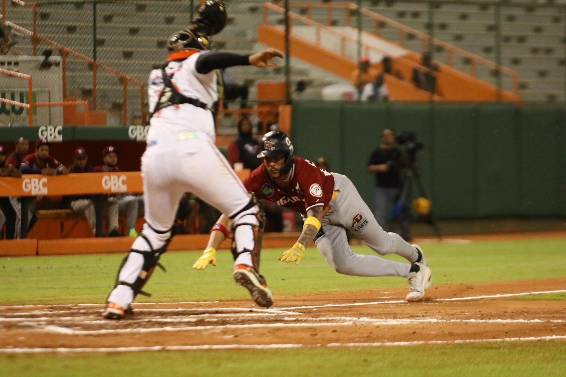 Sirí se robó el plato en un segundo doble robo con Johan Rojas, quienes se habían estafado la segunda y tercera previo al plato ante Matt Dermody y Francisco Peña.
