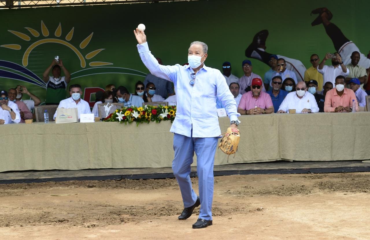 -El presidente de la Liga Dominicana de Béisbol Vitelio Mejía funge como bateador, el ministro de Deportes Francisco Camacho de receptor, Junior Noboa y Julio Virgilio Brache como árbitros.
