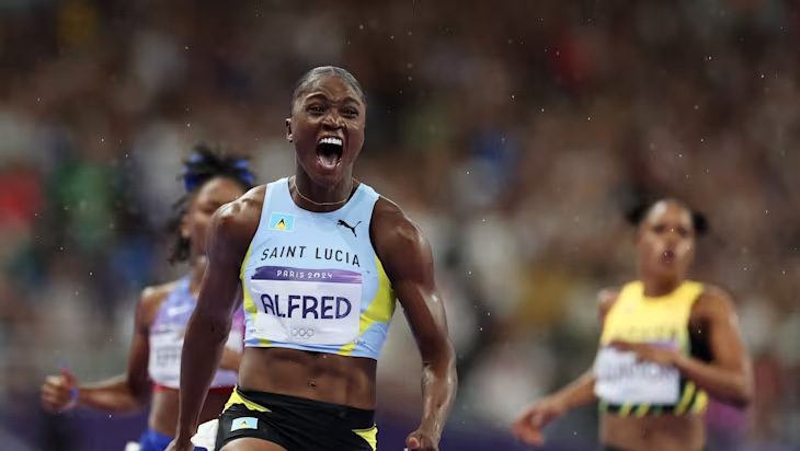 Bajo la lluvia, contra las favoritas y con amplio margen: Julien Alfred es la nueva reina de la velocidad al ganar cómodamente la prueba de los 100m femeninos de París 2024.