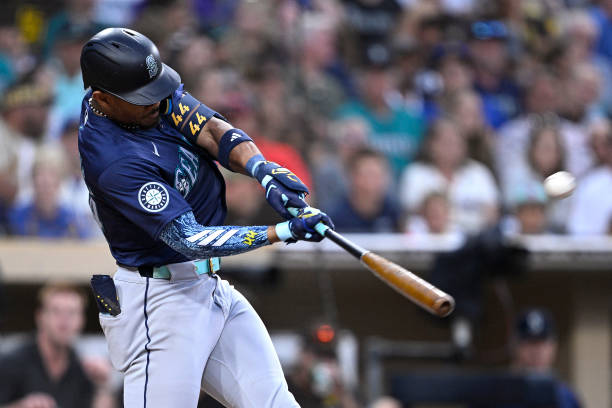 Julio Rodríguez (Escogido), de los Marineros, se fue de 4-4 con un jonrón solitario, un doble, dos carreras impulsadas y tres carreras anotadas, quedándose a ley de un triple para el ciclo el triunfo de 8-3 sobre los Padres ante 43,123 personas en Petco Park de San Diego, California.