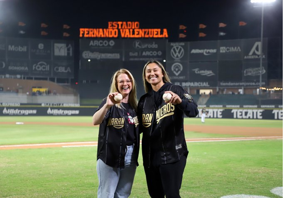 Kelsie también fue invitada a hacer el primer lanzamiento simbólico en el primer juego de la serie ante Charros de Jalisco, acompañándose en esa acción de Emily Tadesco, Vicecónsul del Consulado General de Estados Unidos en Hermosillo.