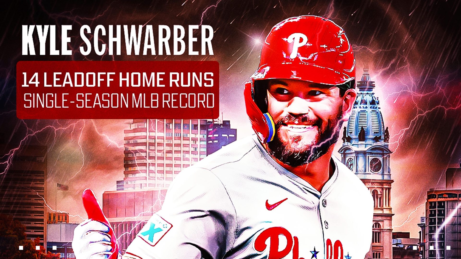 La noche del martes en el Citizens Bank Park, Schwarber conectó su 14to jonrón abriendo juego de la temporada contra los Rays, estableciendo un récord de Grandes Ligas en una sola campaña. Hasta ese momento, Schwarber estaba empatado con el dominicano Alfonso Soriano (2003) con 13.
