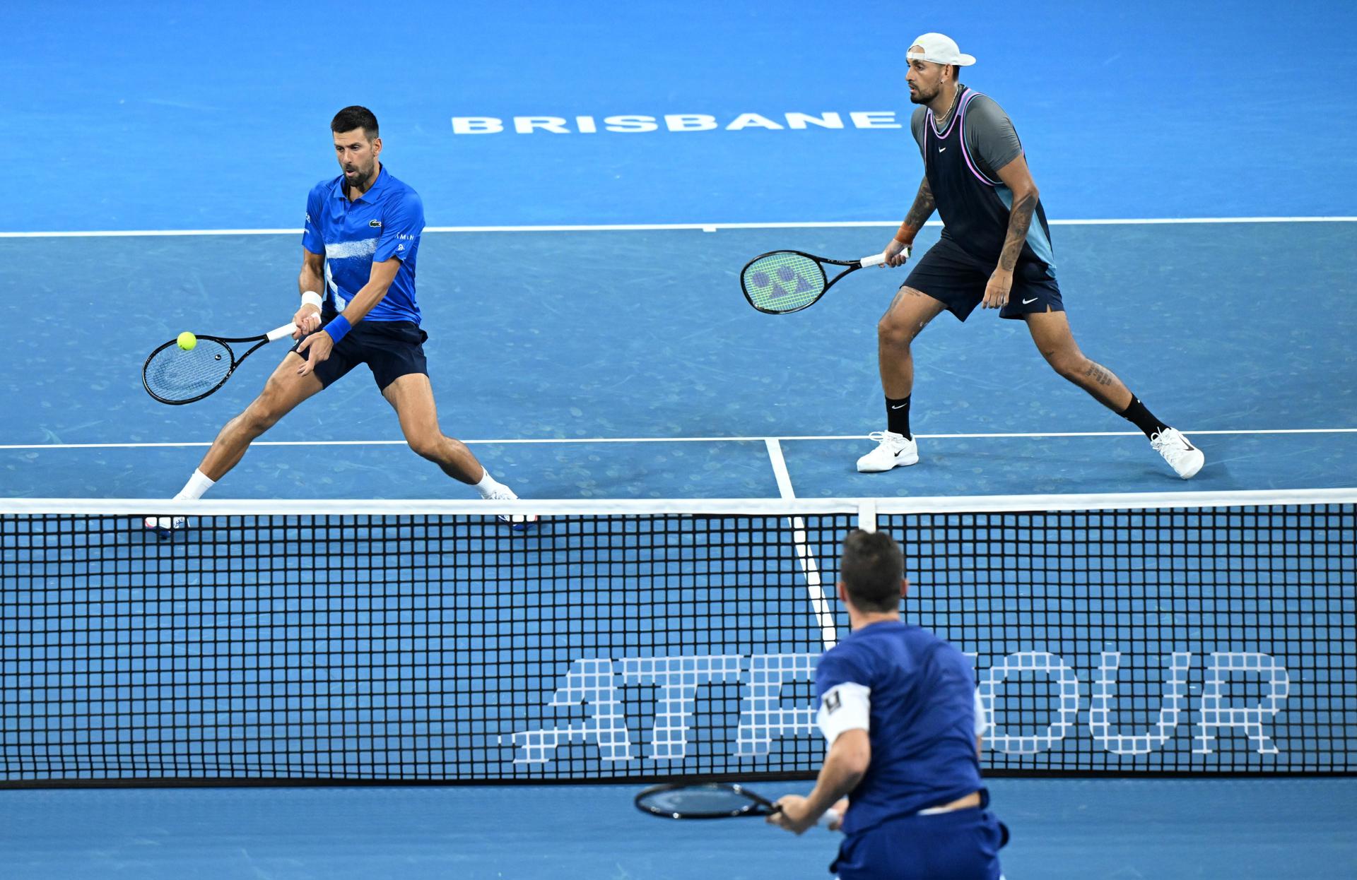 En su tándem con Djokovic preparatorio para el Abierto de Australia, Kyrgios puso en pie al público con varios golpes de calidad, en particular, uno por debajo de las piernas que concluyó en punto.