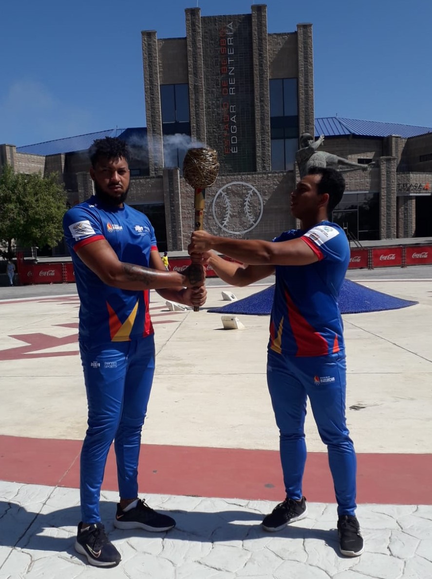 Posteriormente, la antorcha llegó al estadio de softbol Edgardo Schemel, donde se jugará este deporte desde el sábado 27 de noviembre. El fuego panamericano llegó en manos de las jugadoras de la selección Colombia de softbol femenino, Melany Jiménez y Sofía Reyes.