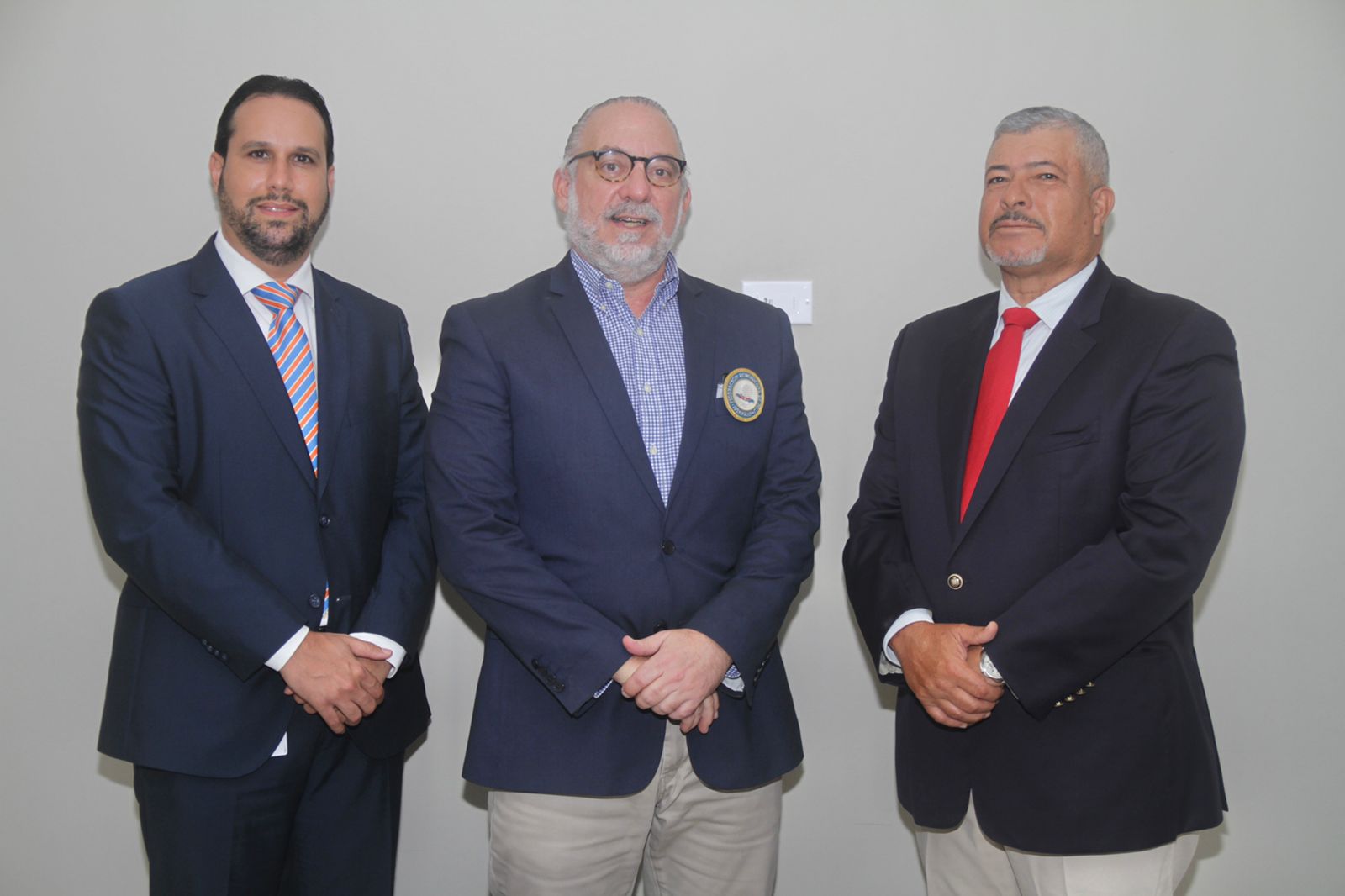 Desde la izquierda Pedro Báez, del Banreservas, junto a Carlos Elmúdesi y Luis José Placeres, presidente y director de Fedogolf, respectivamente. Fuente Externa.