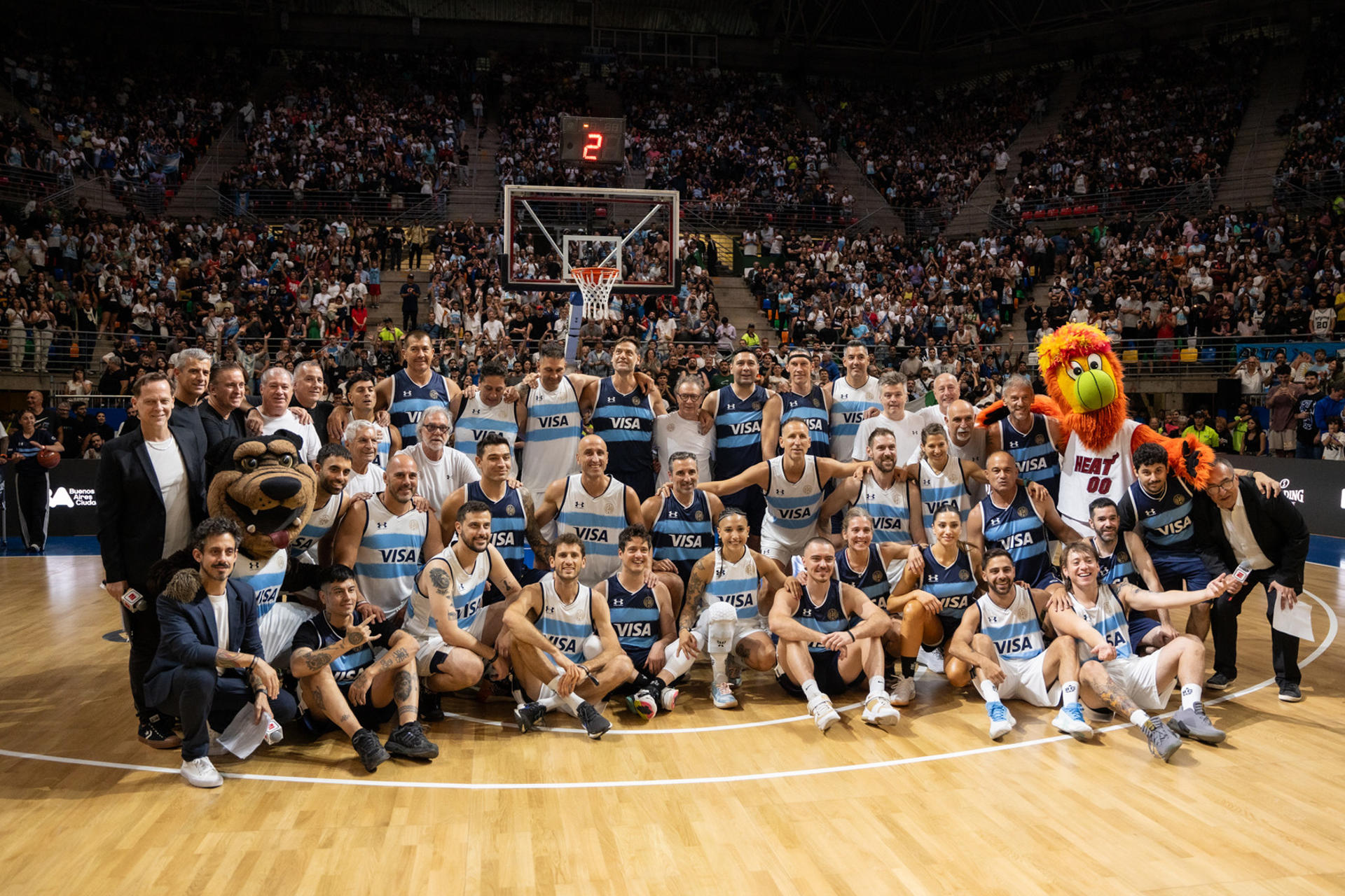 La fiesta incluyó la presencia de dos mascotas: Rosco (de la Selección Argentina) y Burnie (Miami Heat), un torneo de triples, una recreación de la coronación del podio de Atenas y la palabra emotiva de cierre de los protagonistas entre lágrimas y risas.